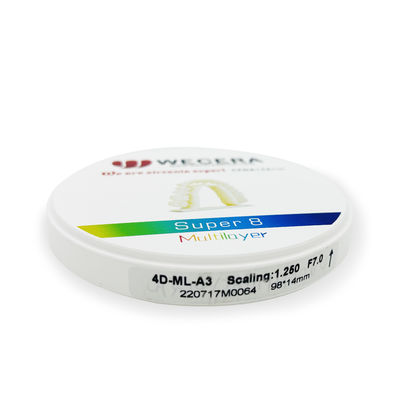 1 : Wecera 3D plus ml et Super8 ml, en raison de la translucidité élevée et de haute résistance combiné à moins d'un disque, le spectre entier d'indication peut être couvert. Ceci réduit au minimum votre inventaire de différents disques de zircone.