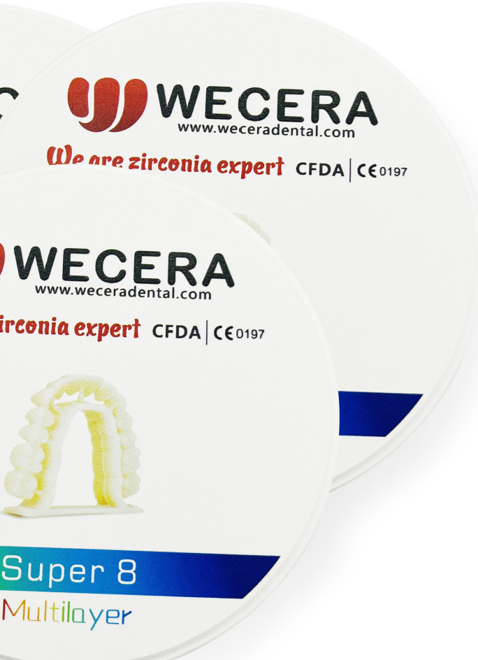Wecera 3D Pro Multilayer Zirconia Block est fabriqué à partir de poudre de nano zirconia biologique 100% de Tosoh avec technologie de production de pressage isostatique à froid, c'est la zirconie la plus naturelle du marché,Ça change de couleur.Cette zirconie peut faire à la fois la couronne anatomique postérieure et antérieure et le pont ((jusqu'à 14 unités)